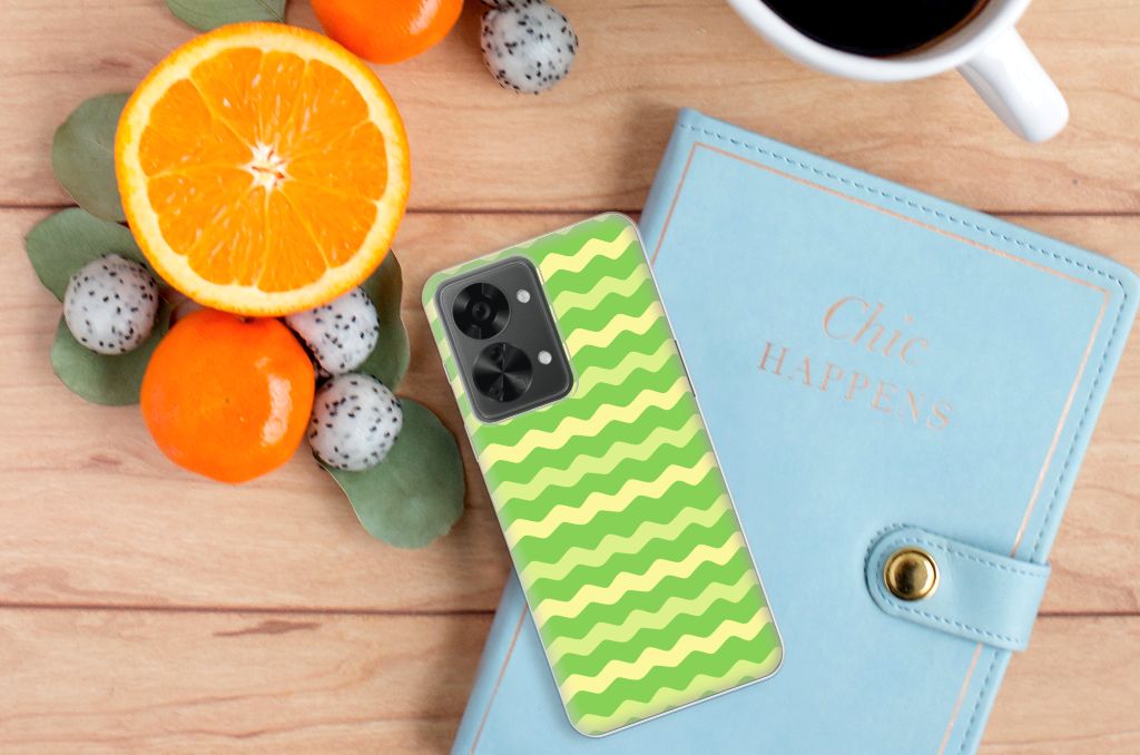 Dit groene design hoesje met groene golven is speciaal ontworpen voor jouw telefoon. We hebben een vleugje geel toegevoegd, zodat er sprake is van variatie. Dit Waves Green hoesje ziet er flitsend uit. Dat kan ook niet anders, als je weet dat we veel energie steken in het bedenken van originele designs. Een heel strak OnePlus Nord 2T TPU bumper, met zeer veel opties. Past dit groene design hoesje met golven goed bij jou? Bestel het dan vandaag nog, tegen zeer lage kosten. Het design staat op een TPU case. Dit hoesje wordt alleen aan de bovenkant bedrukt en is zeer flexibel. De randen van het hoesje met groene golven blijven transparant en worden niet bedrukt. Met dit hoesje past jouw telefoon altijd in je broekzak.