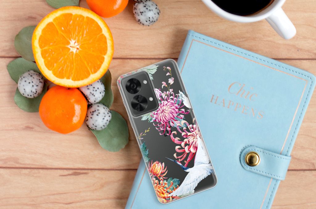 Verspreid over de hele wereld leven 19 soorten ooievaars. De spanwijdte – dat is de afstand van vleugeltip tot vleugeltip – van een volwassen ooievaar kan 2.50 meter bedragen. De gebieden waarin de ooievaar broedt, liggen in heel Europa, het Midden-Oosten, West- en Centraal-Azië en Noordwest-Afrika. Het ideale leefgebied van de ooievaar is een half open tot open landschap met veel afwisseling in grondgebruik en begroeiing. De begroeiing op dit design hoesje, in allerlei verschillende kleuren, zal niet alleen voor de ooievaars fraai zijn. Jij zult er zelf ook heel vrolijk van worden. Het in het oog springende design staat op een TPU Hoesje. Dit telefoonhoesje wordt alleen aan de bovenkant bedrukt en is zeer flexibel. De randen van het hoesje blijven transparant en worden niet bedrukt. Met dit hoesje past jouw OnePlus Nord 2T altijd in je broekzak.