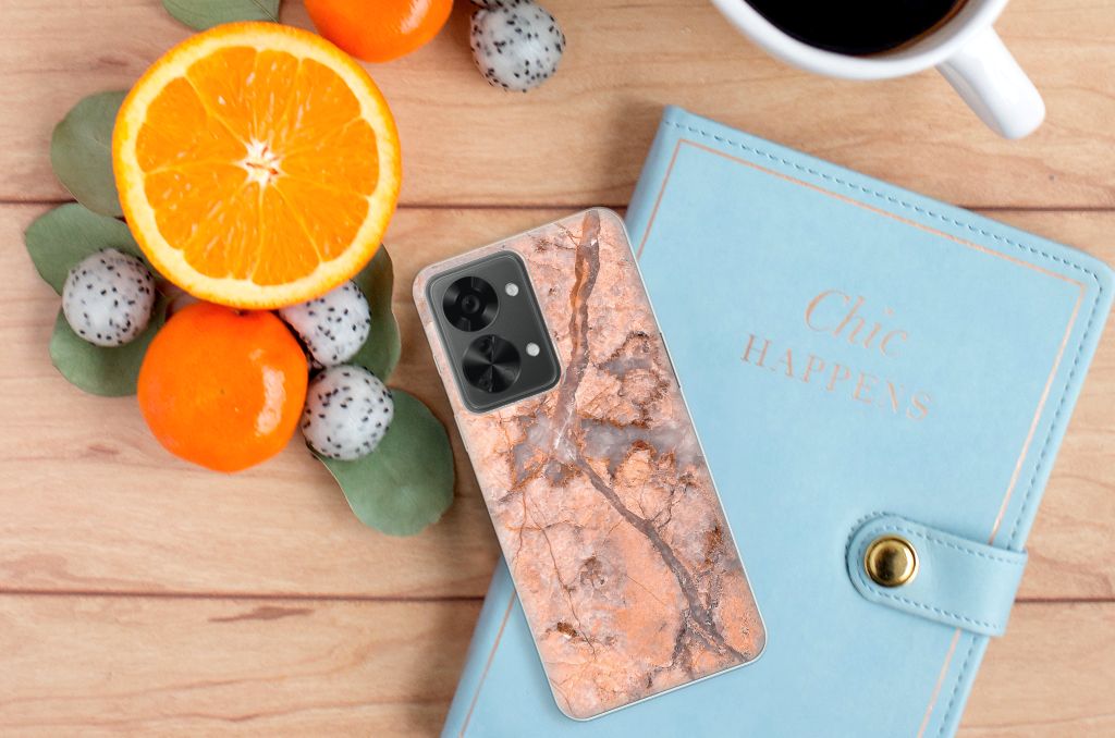 Dit design hoesje met Marmer Oranje is zeer geschikt voor jouw kostbare telefoon. Vanwege zijn prachtige lichtval en vastheid is marmer een zeer gewild bouwmateriaal. Wij kunnen inmiddels concluderen dat dit hoesje met oranje marmer ook zeer gewild is. Beloon jezelf en je telefoon met dit hele mooie OnePlus Nord 2T TPU Siliconen Hoesje. Naast het oranje marmer zijn er de diverse marmersoorten in een ruim kleurenpallet te krijgen. Deze tpu case met marmer in oranje wordt aan de achterzijde bedrukt. De case beschikt over opstaande randen en is gemaakt van onbreekbaar materiaal. De randen van de case in oranje marmer blijven transparant. Wij hebben onze designer veel vrijheid gegeven met het ontwerpen dit mooie hoesje. Het resultaat zie je terug in deze tpu case met oranje marmer, dat een hele goede bescherming is voor jouw smartphone. Des te mooi dat wij voor variatie hebben gekozen door een hoesje met oranje marmer aan de bieden.