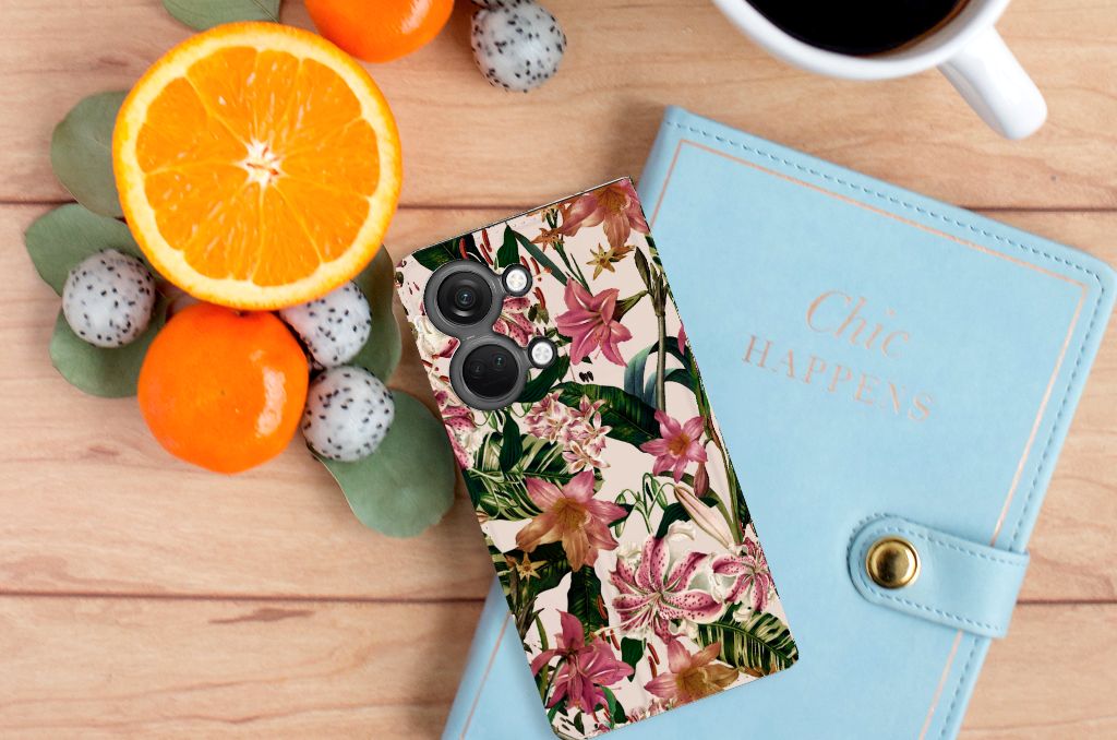 Dit Flowers design is een zegen voor de mens en zijn smartphone. De paarswitte bloemen en groene bladeren op deze OnePlus Nord 3 Smart Cover geven jouw smartphone een zeer sierlijke uitstraling. Je krijgt er meteen een goed gevoel bij als je aan het appen, mailen of aan het bellen bent. Valt dan je telefoon op de grond, dan zal er dankzij de stand case met paarswitte bloemen en groene bladeren geen schade ontstaan. Onze stand cases met paarswitte bloemen en groene bladeren bieden de allerbeste bescherming en zijn heel praktisch, wat blijkt uit onder meer het vakje aan de binnenkant en de handige standaard waarmee je de smartphone rechtop op tafel neer kunt zetten. De paarswitte bloemen en groene bladeren komen op alle zijden van de case te staan. Op deze stand case van leer en TPU (houder aan de binnenkant) kun je in no time zelf foto’s van jouw favoriete bloemen zetten.