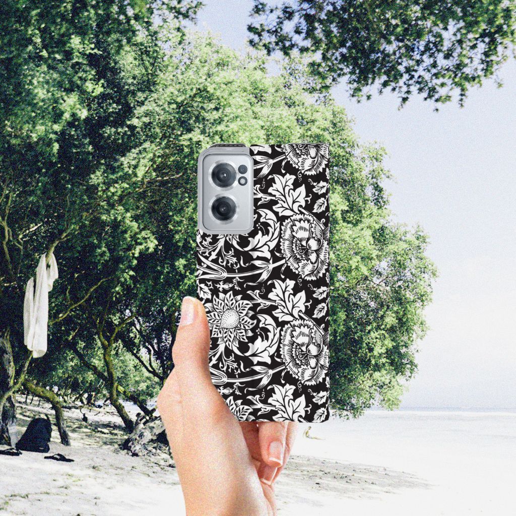 Bloemen raken nooit uit de mode! Een mooie bloemenprint op je telefoonhoesje dus ook niet. Dit ontwerp met mooie, enigszins abstracte bloemen is perfect voor de liefhebber van bloemen die geen felgekleurd hoesje wil. Vanwege de zwarte achtergrond en de witte bloemen heb je toch een opvallend en uniek design in handen. Dit black flowers-ontwerp staat op een Smart Cover voor je OnePlus Nord CE 2 5G. Dit populaire smartphonehoesje met het beton-design heeft één vakje voor een pasje of briefgeld en is aan alle zijden bedrukt. Met de standcase zet je je telefoon gemakkelijk neer, zodat je je handen vrij hebt als je bijvoorbeeld een video wilt kijken. De binnenkant van de standcase is van grijs PU-leer. Dat is fijn, omdat je daardoor niet snel vlekken ziet op je hoesje.