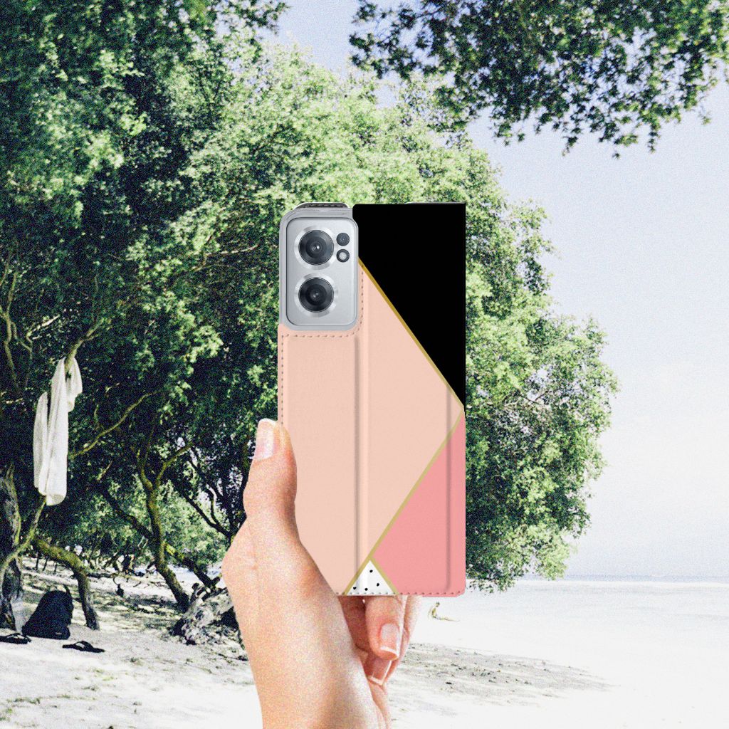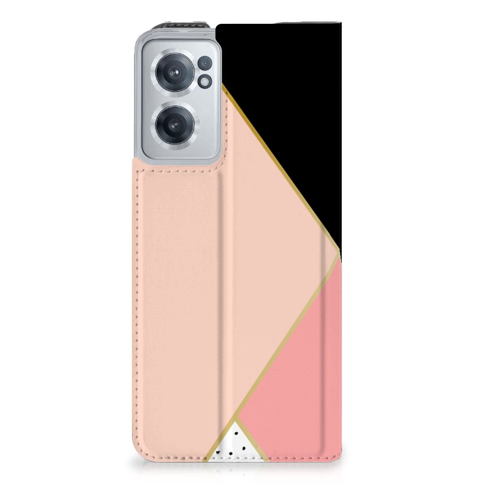 OnePlus Nord CE 2 5G Print Stand Case Zwart Roze Vormen
