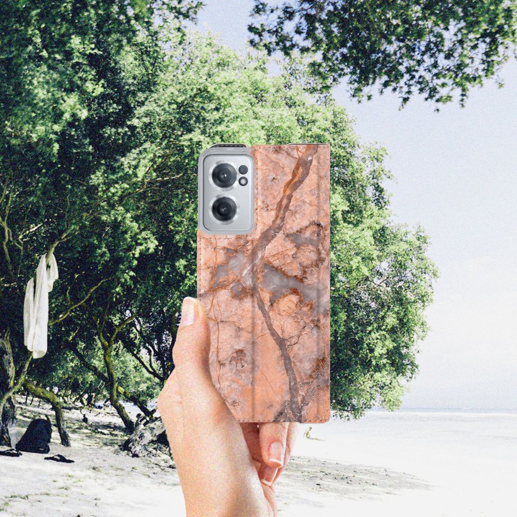 OnePlus Nord CE 2 Bookcase Marble Pink - Origineel Cadeau Vriendin