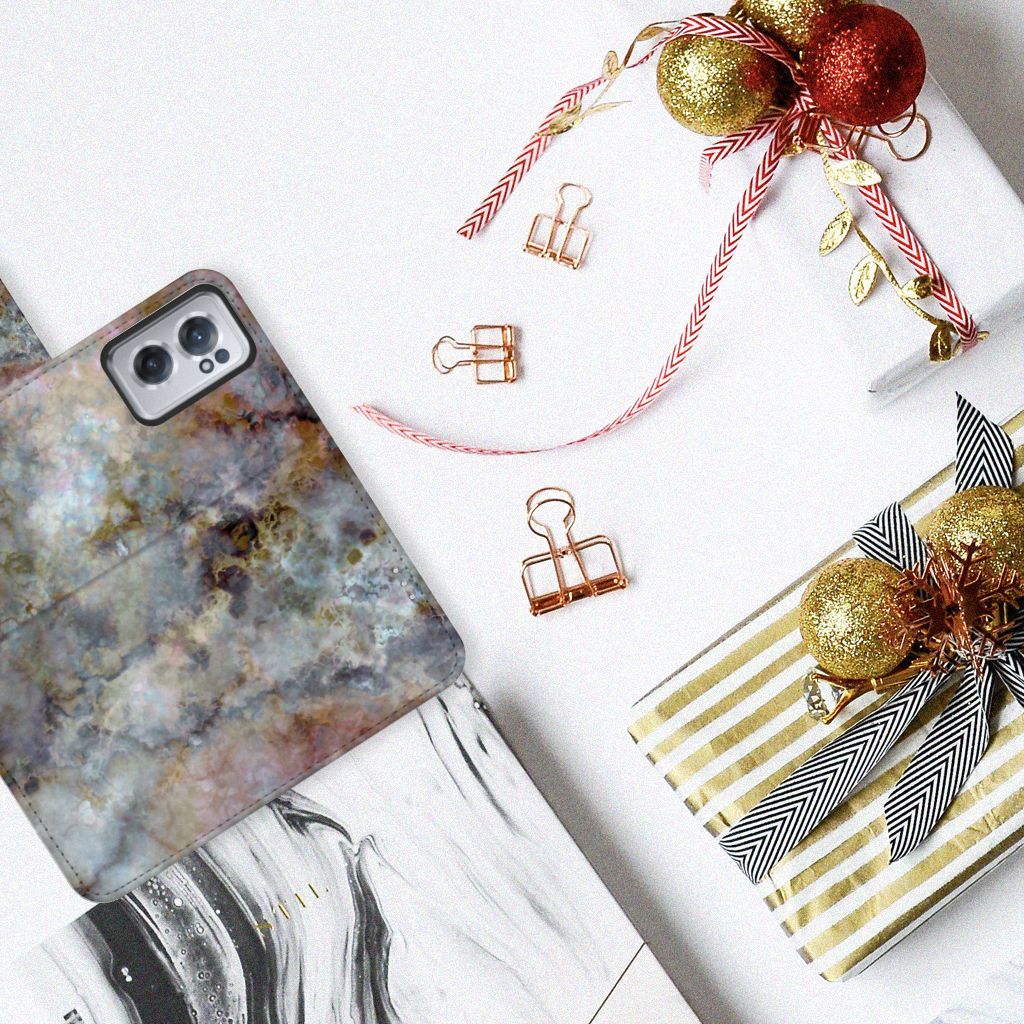 OnePlus Nord CE 2 Bookcase met ruimte voor 3 pasjes Marmer Grijs