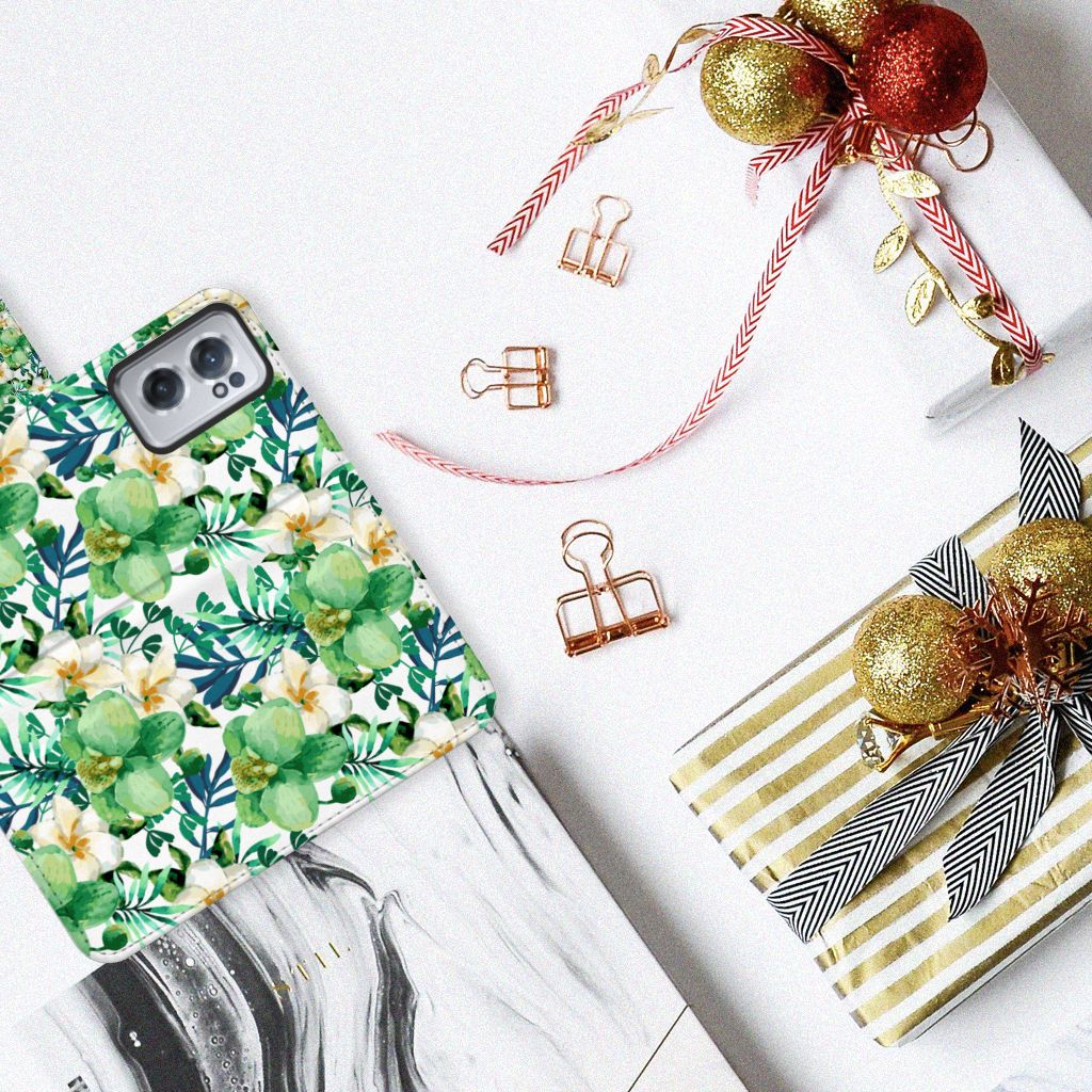 OnePlus Nord CE 2 Hoesje met ruimte voor drie pasjes Orchidee Groen