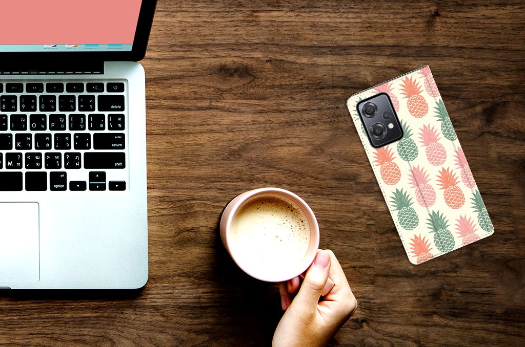 Ananas is een woord uit het Tupi, de taal van de Tupi-indianen, en betekent uitmuntende vrucht. Dit fruit van zeer hoge kwaliteit staat op onze superieure boekhoesjes, stand cases, hard cases en TPU cases. Jij blijft er gezond uitzien als je zo nu en dan een hap neemt van een Ananas , jouw smartphone blijft tip top in orde als je er een leuk telefoonhoesje omheen doet. Een ananas heeft stevig, veerkrachtig vruchtvlees. Een beetje te vergelijken met het TPU in onze hoesjes. TPU is elastisch materiaal, dat zeer buigzaam is. Vandaar dat het zeer schokbestendig is. Het ananas design staat op een stand case. Deze OnePlus Nord CE 2 Lite 5G Flip Style Cover beschermt jouw telefoon aan alle kanten en beschikt over een 1 opbergvakje en een speciale standaard. Het hoesje wordt afgesloten met een magneet aan de binnenzijde. De houder aan de binnenzijde is van TPU.