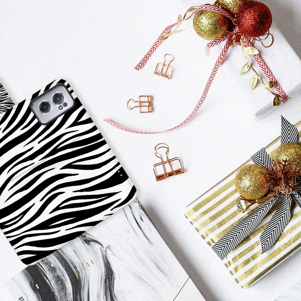 OnePlus Nord CE 2 Telefoonhoesje met ruimte voor 3 pasjes Zebraprint