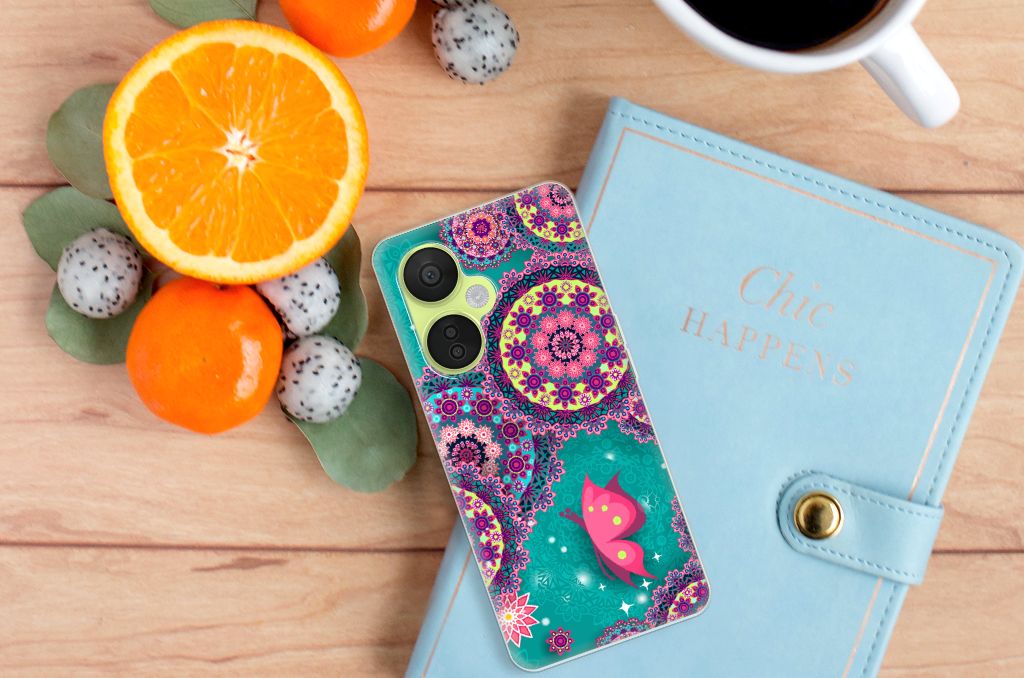Deze opvallende OnePlus Nord CE 3 Lite Hoesje maken met Cirkels en Vlinders is een ware eyecatcher. De meeste vlinders hebben een onopvallende vleugelkleur en dat kun je van de soort op dit hoesje ook zeker wel zeggen. Wij kunnen deze opvallende vlinders en cirkels op een zeer handige tpu case zetten. Deze hoesjes zijn gewild omwille hun flexibiliteit. Met onze geavanceerde printer zetten we de print van opvallende vlinders en cirkels op de achterkant van het hoesje. De case met vlinders en cirkels blijft aan de zijkanten doorzichtig, zodat je maximaal het design van je smartphone behoudt. Verder is je telefoon natuurlijk goed beschermd met deze tpu case met print van blauwe vlinders. De bovenkant wordt bedrukt, de zijkanten niet. Met een screenprotector bescherm je ook het scherm maximaal.