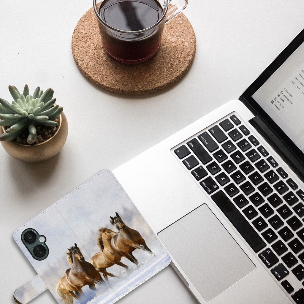 Als je een paardenliefhebber bent, dan is dit telefoonhoesje met ruimte voor pasjes misschien wel wat voor jou. Ondanks dat er paarden op staan, heeft deze bookcase toch een rustig uiterlijk. Dit is ook dankzij de kleuren die gebruikt zijn. Als je liever jouw eigen paarden terugziet op dit OnePlus Nord CE 3 Lite hoesje, dan is dit ook mogelijk! Voor een uniek Telefoonhoesje met Pasjes kun je jouw foto insturen zodat deze op het hoesje kan worden gedrukt. Zo heb jij jouw paarden toch altijd een beetje bij je. Naast dat dit unieke telefoonhoesje erg mooi is, is hij ook nog functioneel. Het is een telefoonhoesje met ruimte voor pasjes, zodat al jouw belangrijke zaken op één plek kunnen worden bewaard. Hierdoor zal je jouw pasjes een stuk minder snel kwijtraken en heb je ze altijd bij de hand.