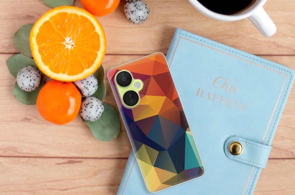 Veelkleurige driehoeken die samen eindeloze asymmetrische patronen lijken te vormen. Het is het abstracte schouwspel dat op dit fraaie hoesje voor je OnePlus Nord CE 3 Lite direct de aandacht trekt noemen we voor het gemak trekt noemen we voor het gemak Polygon Color. De een ziet er een berglandschap in, de ander piramides. Wat zie jij erin? Zeker is in elk geval dat de aanblik van dit fascinerende ontwerp je niet snel gaat vervelen. Het kleurige spel van lijnen en vlakken blijft eindeloos boeien en geeft jouw TPU Hoesje een hippe en kunstzinnige uitstraling. De kracht die het lijnenspel uitstraalt, komt ook terug in het hoesje zelf. Dit hoesje wordt alleen aan de bovenkant bedrukt en is zeer flexibel. De randen van het hoesje blijven transparant. Wat wil je nog meer?