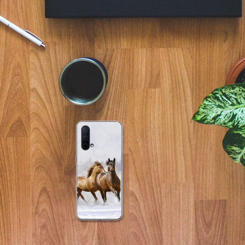 Voor de paardenliefhebbers onder ons hebben we onze collectie uitgebreid met dit design hoesje met print van paarden. Vroeger hield de mens vooral werkpaarden, inmiddels hebben we vriendschap gesloten met het paard. Vandaar dat het ook een favoriet dier is op onze smartphonehoesjes, zoals deze tpu case. Een TPU Hoesje voor de OnePlus Nord CE 5G met Paarden is niet alleen super mooi en chique, maar ook nog eens zeer flexibel. Verder is de case schokabsorberend en heeft het opstaande randen. Zie je liever je eigen paard terug op een hoesje. Dat kan! Door zelf een uniek hoesje te ontwerpen, met eigen foto’s en teksten. De TPU case wordt aan de bovenzijde bedrukt, de zijkanten blijven transparant.