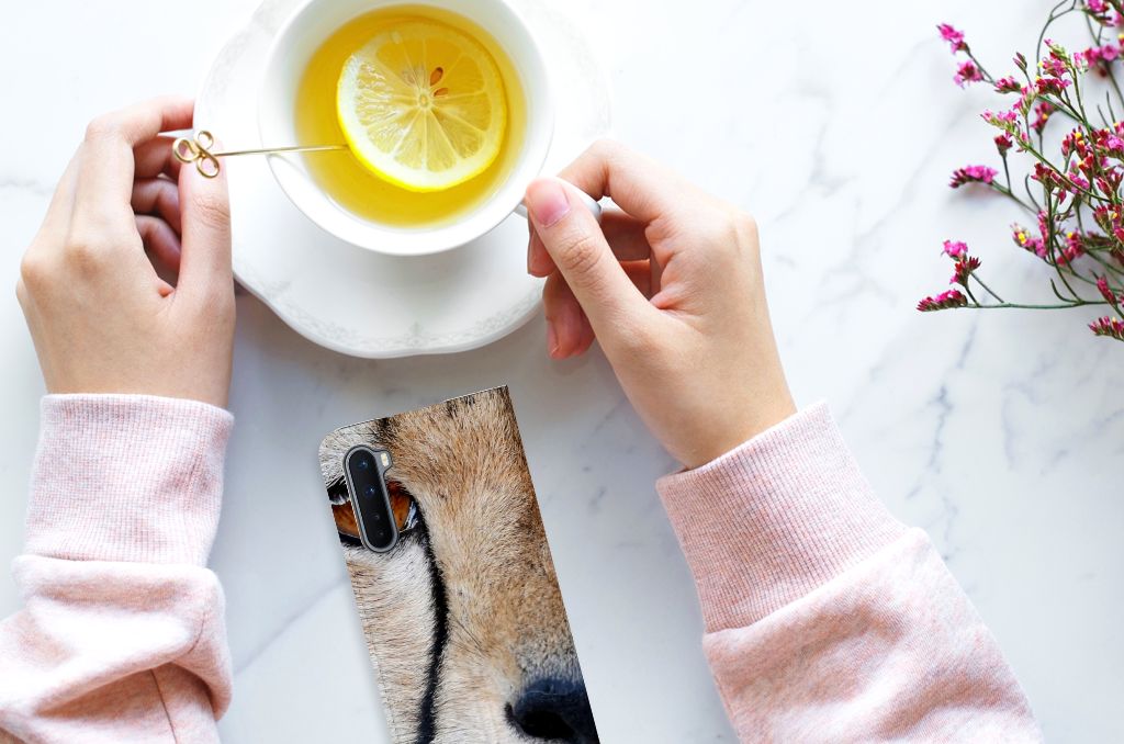 Wist je dat een cheetah, ook wel jachtluipaard genoemd, een topsnelheid van 120 km/u kan halen? Dit maakt de cheetah tot het snelste landdier ter wereld. Dit design hoesje met cheetah print kunnen we dus met recht zeer flitsend noemen. Dit komt niet alleen door de foto van het jachtluipaard, maar ook door de uitstraling van het hoesje. De close up van het dier hebben we op een stand case gezet. Dit is een multifunctionele case, met een vakje aan de binnenzijde waarin je een pasje kwijt kunt. Hiermee is de kous nog niet af, want een OnePlus Nord Hoesje maken wordt aan de binnenzijde magnetisch afgesloten en heeft een standaard. De vacht van jachtluipaarden is bedekt met ronde, zwarte vlekjes. Hierdoor valt het dier in zijn natuurlijke leefomgeving zo min mogelijk op. Jij doet dat zeker wel, met deze stand case met design. De buitenzijde is van leer, de houder aan de binnenzijde van TPU.