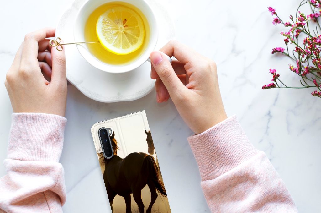 Voor de paardenliefhebbers onder ons hebben we onze collectie uitgebreid met dit design hoesje met print van paarden. Vroeger hield de mens vooral werkpaarden, inmiddels hebben we vriendschap gesloten met het paard. Vandaar dat het ook een favoriet dier is op onze smartphonehoesjes, zoals deze stand cases. Deze OnePlus Nord Hoesje maken met paarden is niet alleen super mooi en chique, het sluit ook nog perfect dankzij de magneet aan de binnenzijde. Verder heeft de case een TPU houder aan de binnenzijde en een houder voor een pasje. Zie je liever je eigen paard terug op een hoesje? Dat kan! Door zelf een uniek hoesje te ontwerpen, met eigen foto’s en teksten. De stand case met paarden wordt aan alle zijden bedrukt.