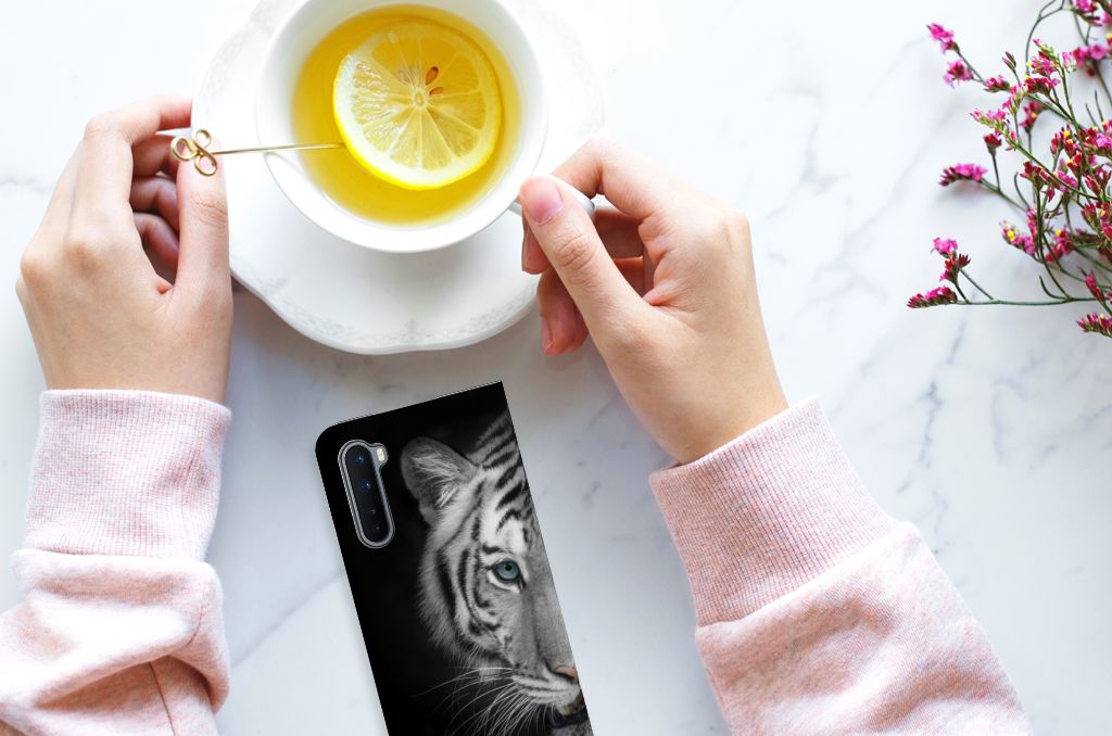 Omdat de Witte Tijger zo bijzonder is, zijn wij bereid deze voor zeer lage kosten op een stand case te zetten. Dit kunnen we zo goedkoop doen omdat we het drukwerk in eigen beheer doen. Witte tijgers leefden lange tijd in de bossen van India, Bangladesh, Nepal, Bhutan en China en kunnen wel 257 kilo wegen. Dit zwaargewicht kunnen we bedrukken op verschillende soorten hoesjes, zoals deze stand cases. Het OnePlus Nord Hoesje maken is van PU-leer (buitenzijde) en TPU (binnenzijde) en beschikt over een houder voor pasjes en briefgeld. Verder is dit hoesje met witte tijger print voorzien van magneten aan de binnenzijde. Tegenwoordig zijn witte tijgers alleen in gevangenschap te bewonderen. Jij zorgt voor de perfecte bescherming van je smartphone met dit design hoesje met witte tijger.