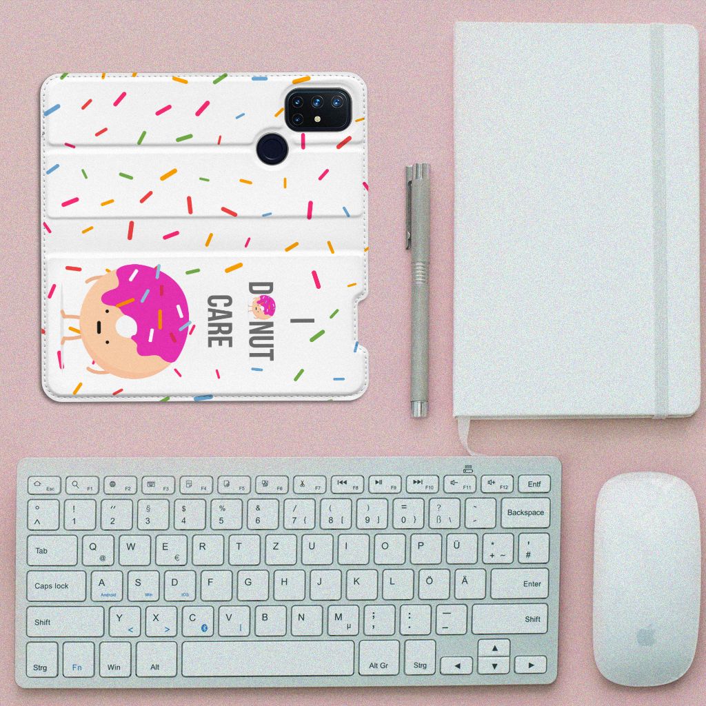 De cartoon met Donut op dit design hoesje geeft jouw smartphone een grappige en vrolijke uitstraling. De OnePlus Nord N10 5G Flip Style Cover zorgt ervoor dat je je schouders op zult halen als je telefoon een keer op de grond valt. Omdat er geen schade zal optreden kun jij je weg weer heel makkelijk vervolgen. De grappige Donut Care stand case is een zeer populair product. Allereerst is het nergens anders te krijgen. Het design is namelijk van de hand van onze eigen ontwerper. Daarnaast zal de case jouw smartphone aan alle zijden beschermen. Ook heeft het Donut Care hoesje een vakje aan de binnenzijde en een speciale standaard. Ook kun je je eigen unieke hoesje ontwerpen, met eigen cartoons, foto’s en teksten. De houder aan de binnenzijde van de Donut Care case is van TPU, de buitenzijde van PU leer.