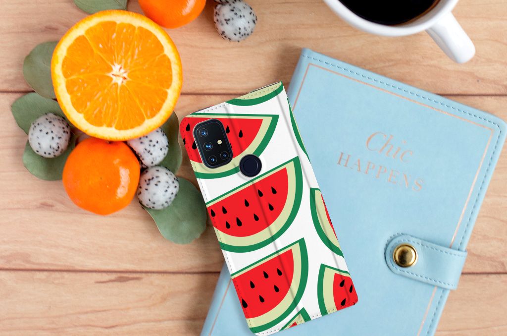 Watermeloenen zijn uitstekende dorstlessers, misschien dat je daarom juist in de zomermaanden extra enthousiast raakt van dit design hoesje Watermelons. Jij blijft gezond als je zo nu en dan een watermeloen neemt, jouw smartphone blijft in tact als je er deze OnePlus Nord N10 5G Flip Style Cover omheen doet. De stand case beschermt jouw telefoon aan alle kanten en beschikt over een 1 opbergvakje en een speciale standaard. Het hoesje wordt afgesloten met een magneet aan de binnenzijde. De houder aan de binnenzijde is van TPU. Je kunt ook kiezen voor andere soorten fruit op je hoesje. Kijk maar eens naar onze andere design hoesjes op onze website.