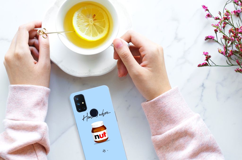 Ben je liefhebber van chocoladepasta, dan is dit het perfecte OnePlus Nord N10 5G Siliconen Case voor jou. De chocoladepasta is enorm populair, dus is het niet zo heel gek dat je een ‘Nut Home’ tpu case in een blauwe kleur aantreft in ons assortiment design hoesjes met illustraties. Dit tpu hoesje is zeer flexibel en past altijd in je broekzak. Alleen de bovenkant van dit hoesje wordt door ons bedrukt in blauwe kleur met de pasta, op zeer duurzame manier. Mensen die houden van de bekendste pasta van het moment, kiezen voor deze blauwe tpu case. Er staan geen illustraties op de zijkanten van een tpu case. Je kunt ook een eigen tekst toevoegen aan het opvallende design.