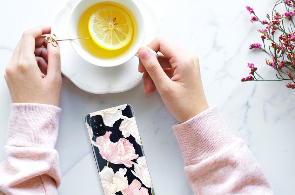 Een bosje bloemen doet een mens (en zijn smartphone) goed. De witte en roze bloemen op deze OnePlus Nord N10 5G TPU Case geven jouw smartphone een zeer mooie uitstraling. Je wordt er ook meteen een stuk rustiger van als je aan het appen of aan het bellen bent. Valt dan je telefoon op de grond, dan zal er dankzij de tpu case met het design Lovely Flowers ontstaan. Helemaal niet als je er een screenprotector bij hebt gekocht. Onze tpu cases met roze en witte bloemen zien er zeer prettig uit en zijn heel praktisch, getuige onder meer de opstaande randen en het flexibele materiaal. Alleen de achterkant van de tpu case wordt bedrukt met roze en witte bloemen. Op deze tpu case kun je trouwens ook een eigen ontwerp zetten. In een paar simpele stappen ontwerp je zelf een stand case met daarop jouw favoriete bloemen.