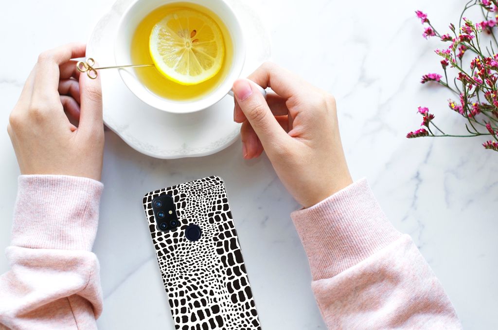 Deze tpu case met zwarte en witte Slangenprint kunnen wij zeer exclusief noemen. Zeker als je er nog een bijzondere tekst van jezelf aan toevoegt, zoals je eigen naam in een sierletter. Jouw tpu case krijgt dan een persoonlijke uitstraling, net nog een beetje specialer dan dit hoesje met zwarte en witte slangenprint. Wat niets afdoet van de exclusiviteit van deze tpu case met zwarte en witte slangenprint. Ben jij toe aan een stoer en opvallend OnePlus Nord N10 5G TPU Hoesje? Pak dan dit design met print van slangenhuid als basis. Het tpu hoesje is zeer flexibel en wordt alleen aan de bovenzijde bedrukt. De randen van dit flexibele hoesje blijven doorzichtig. Jij bent ervan verzekerd dat jouw smartphone tegen een stootje kan met dit tpu hoesje met zwarte en witte slangenprint.