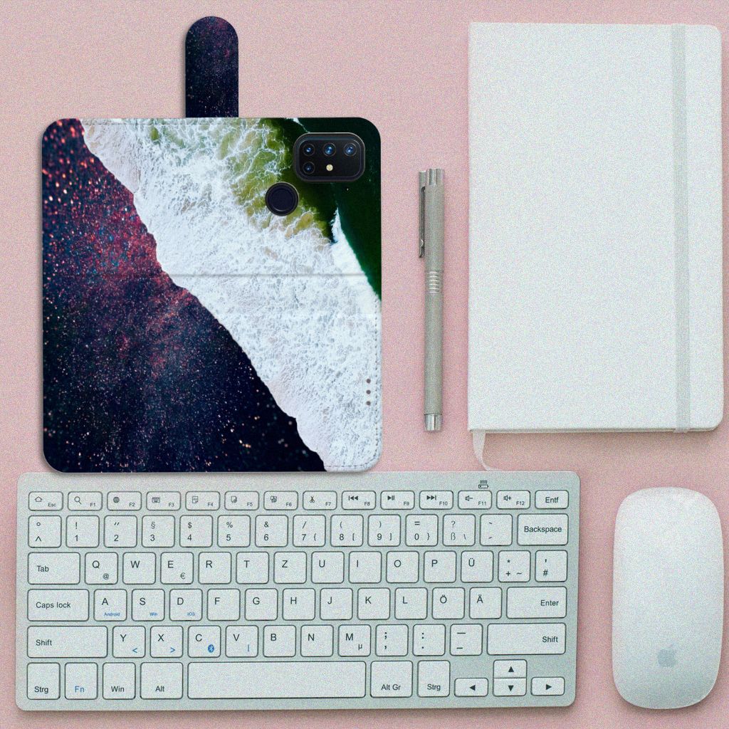 Een boekhoesje zoals deze heb je nog nooit gezien, het lijkt een beetje op een abstract kunstwerk wanneer je ernaar kijkt. Het is dan ook een compleet uniek design ontworpen door onze eigen designer. Onze designer noemt het ontwerp ‘Sea in Space’. Op de OnePlus Nord N10 Book Case zie je dan ook een combinatie van zee en een ruimte vol met sterren. Als jij houdt van zowel de zee als van science fiction dan is dit het ideale boekhoesje voor jou. Maar dit unieke hoesje heeft meer te bieden dan alleen design, je kunt er wel drie pasjes of twee pasjes en wat briefgeld in kwijt. Zo kun je jouw portemonnee lekker thuislaten als je naar de zee gaat of andere plekken van de wereld gaat ontdekken.