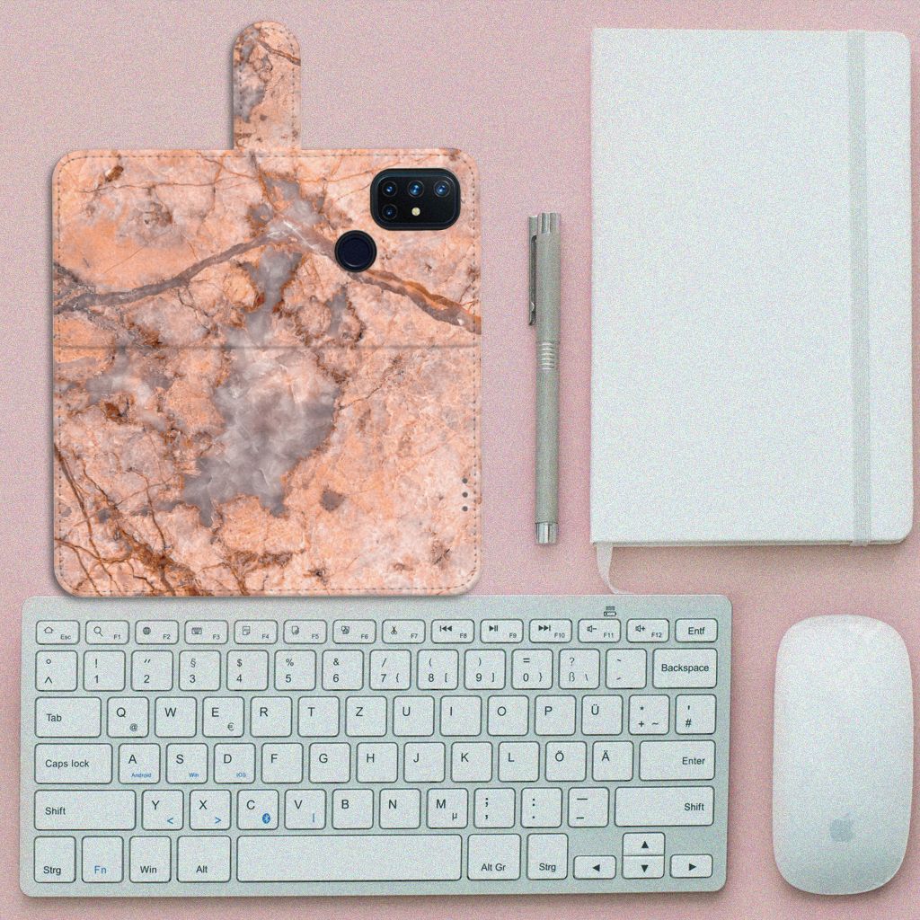 OnePlus Nord N10 Bookcase met pasjes Marmer Oranje