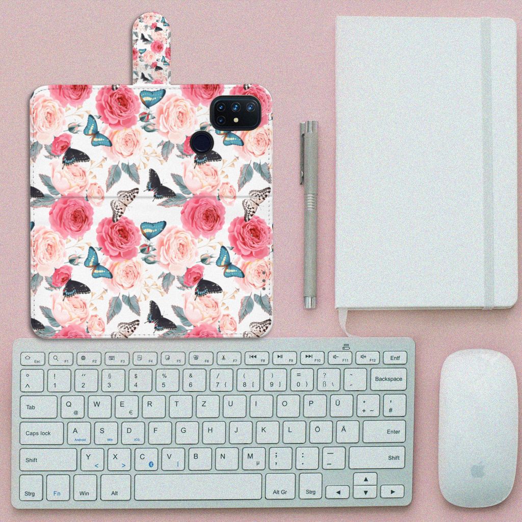OnePlus Nord N10 Hoesje gemaakt van TPU en kunstleer Butterfly Roses