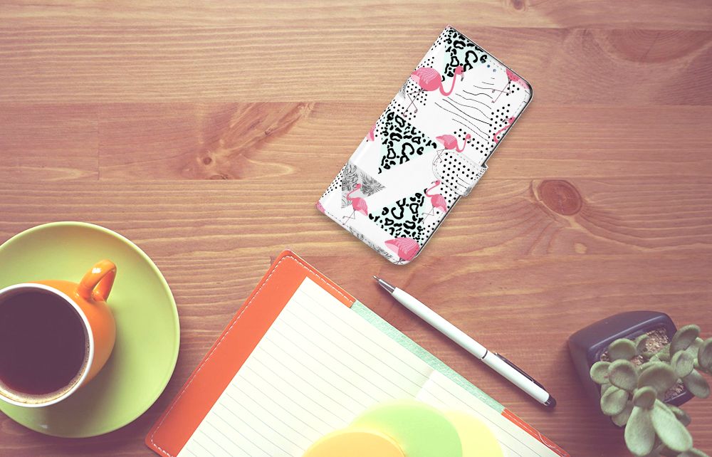 OnePlus Nord N10 Telefoonhoesje met magnetische lipje als sluiting Flamingo Triangle
