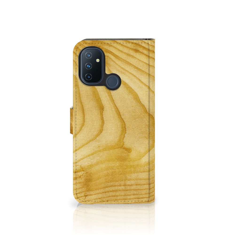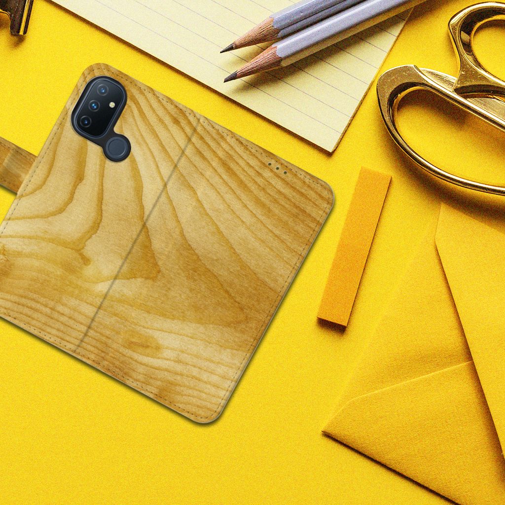 OnePlus Nord N100 Bookstyle Case met pasjes en magnetisch lipje Licht Hout