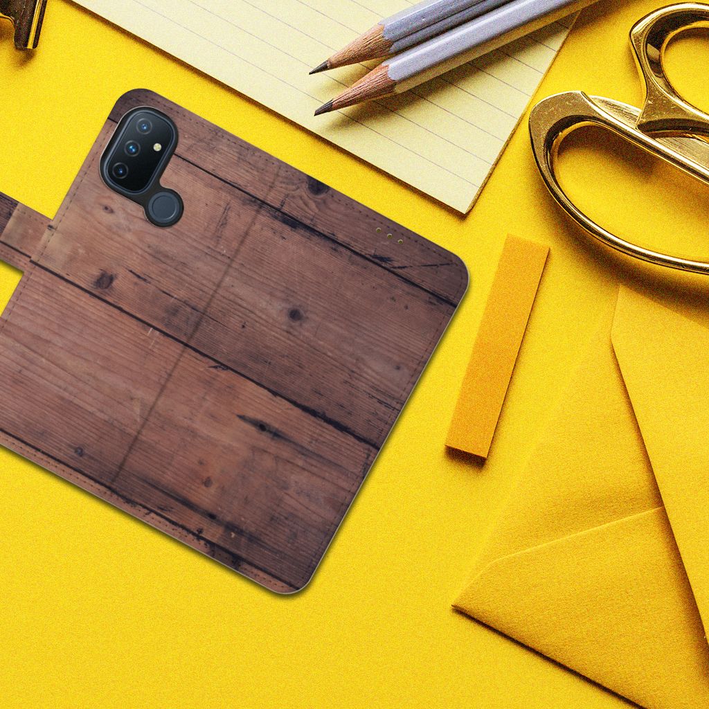 OnePlus Nord N100 Bookstyle Case met pasjes Old Wood