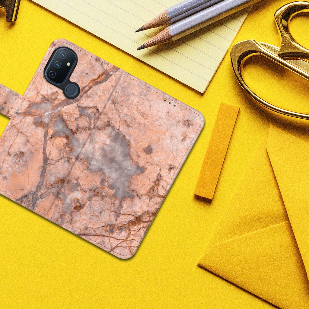 OnePlus Nord N100 Bookcase met pasjes Marmer Oranje