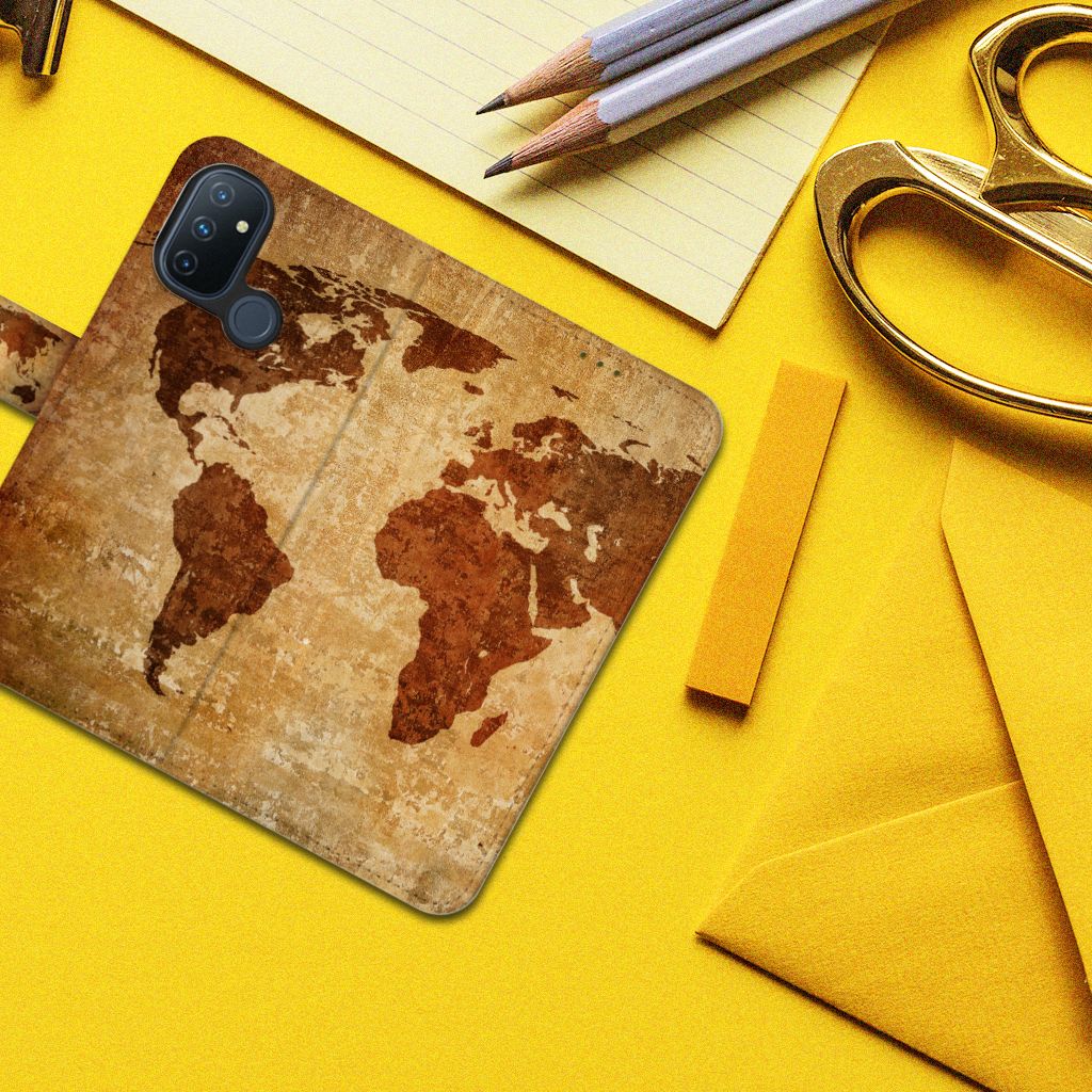 OnePlus Nord N100 Flip Cover met pasjes Wereldkaart
