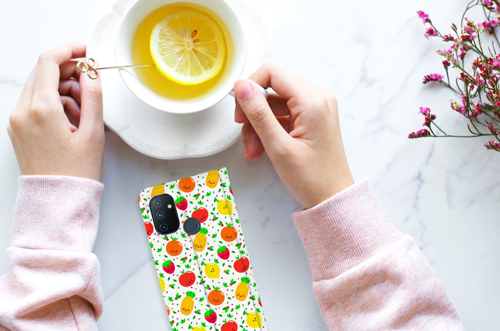 Een fris, fruitig en vrolijk hoesje, deze case met afbeeldingen van aardbeien, ananassen, appels, sinaasappels en citroenen. Minstens twee stuks fruit per dag wordt aanbevolen als dagelijkse hoeveelheid voor de mens. Dit verkleint de kans op allerlei ziekten. Dus met het aantal stukken fruit op de OnePlus Nord N100 Flip Style Cover zou je wel een maandje zoet moeten zijn. Met het hoesje zelf kun je je hele leven doen, dit is namelijk niet stuk te krijgen. Dit komt door het sterke en flexibele materiaal waarvan het gemaakt is. De vrolijk stemmende case het desing Fruits maakt jouw telefoon dus zeer duurzaam. Zorg ervoor dat jouw smartphone gezond blijft en kies voor dit hoesje met frivool fruit. Een stand case met fruit beschermt jouw telefoon aan alle kanten en beschikt over een 1 opbergvakje en een speciale standaard. Het hoesje met fruit wordt afgesloten met een magneet aan de binnenzijde. De houder aan de binnenzijde is van TPU.