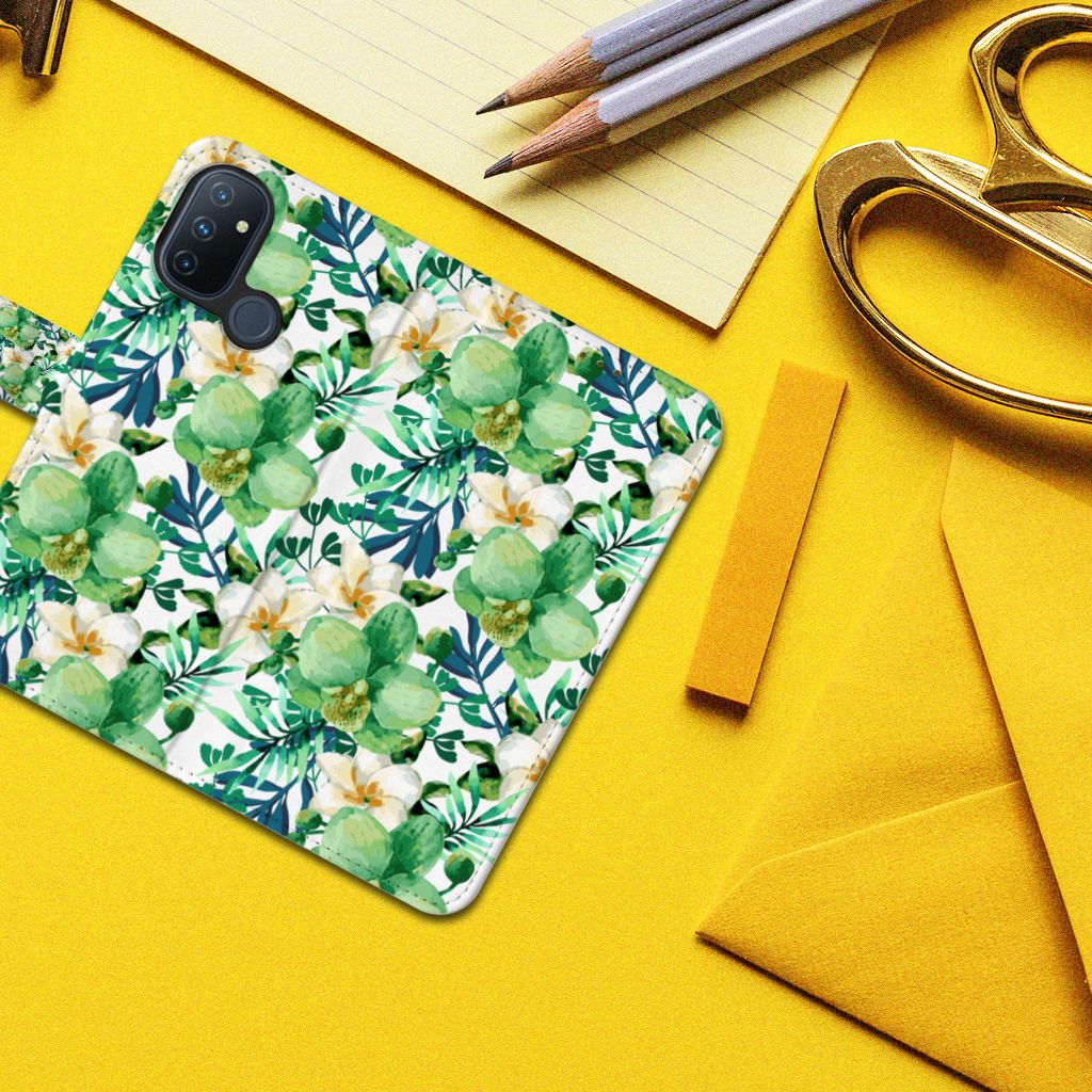 OnePlus Nord N100 Hoesje met ruimte voor drie pasjes Orchidee Groen