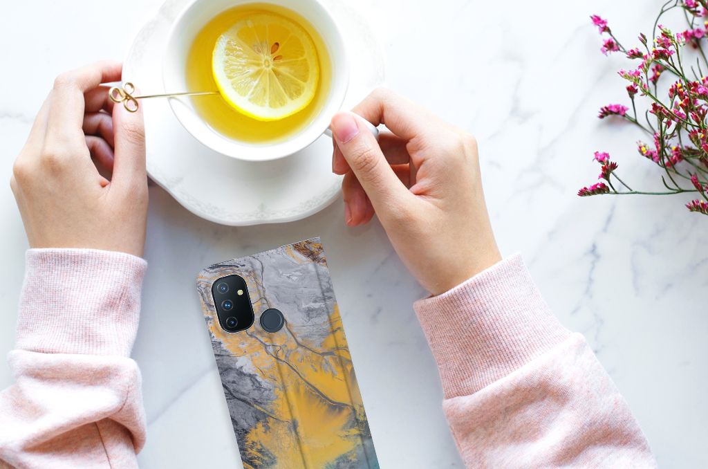 OnePlus Nord N100 Bloemen Hoesje Leaves Grey