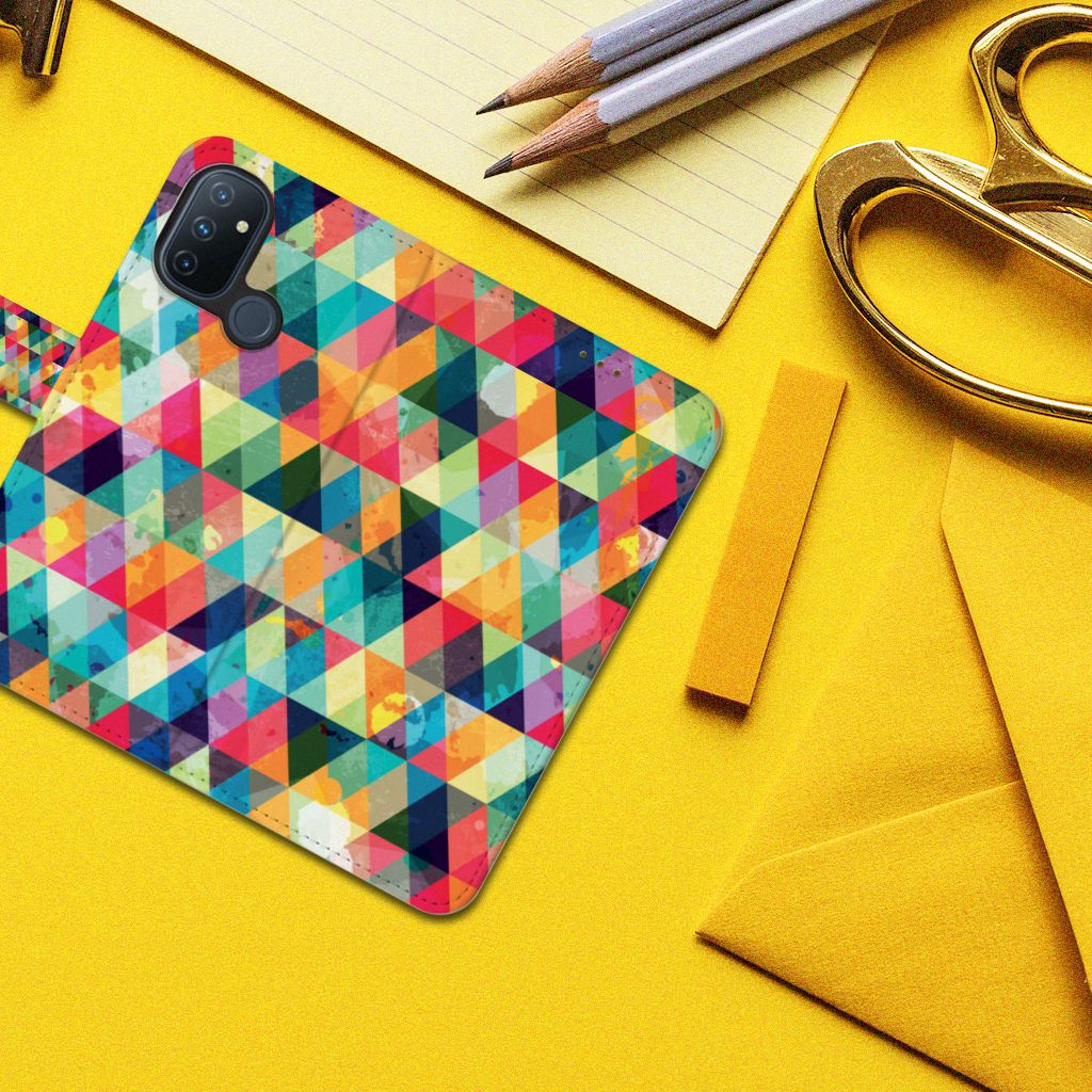 OnePlus Nord N100 Telefoon Hoesje met ruimte voor 3 pasjes Geruit