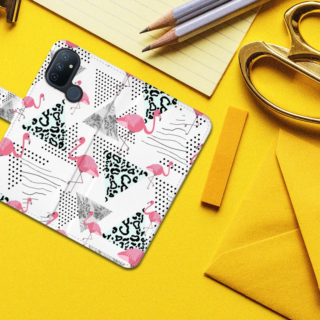 OnePlus Nord N100 Telefoonhoesje met magnetische lipje als sluiting Flamingo Triangle