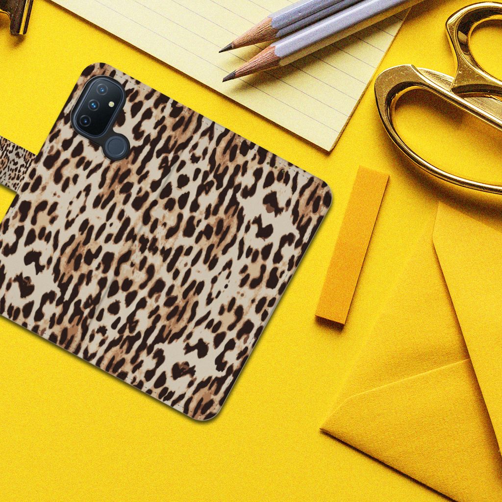OnePlus Nord N100 Telefoonhoesje met Pasjes en met magnetische sluitclip Leopard