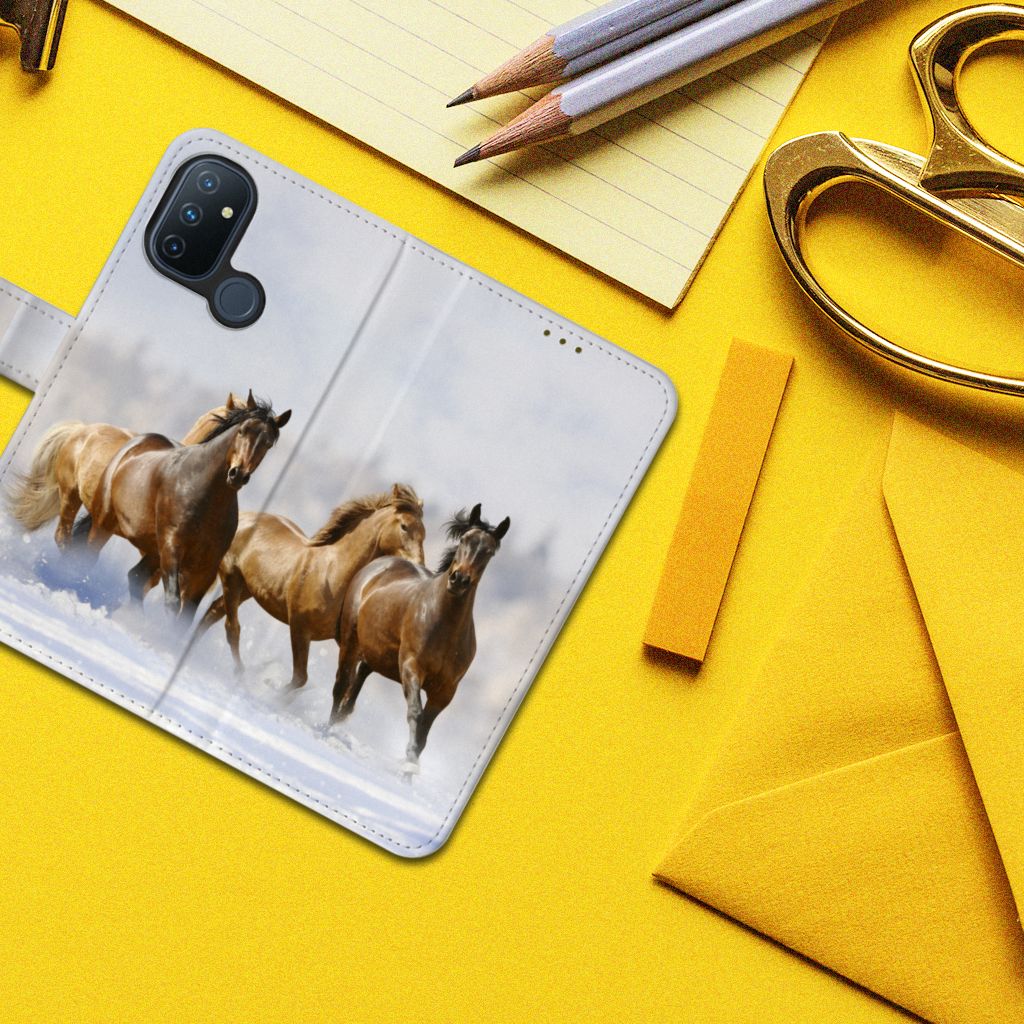 OnePlus Nord N100 Telefoonhoesje magneetsluiting met lipje Paarden
