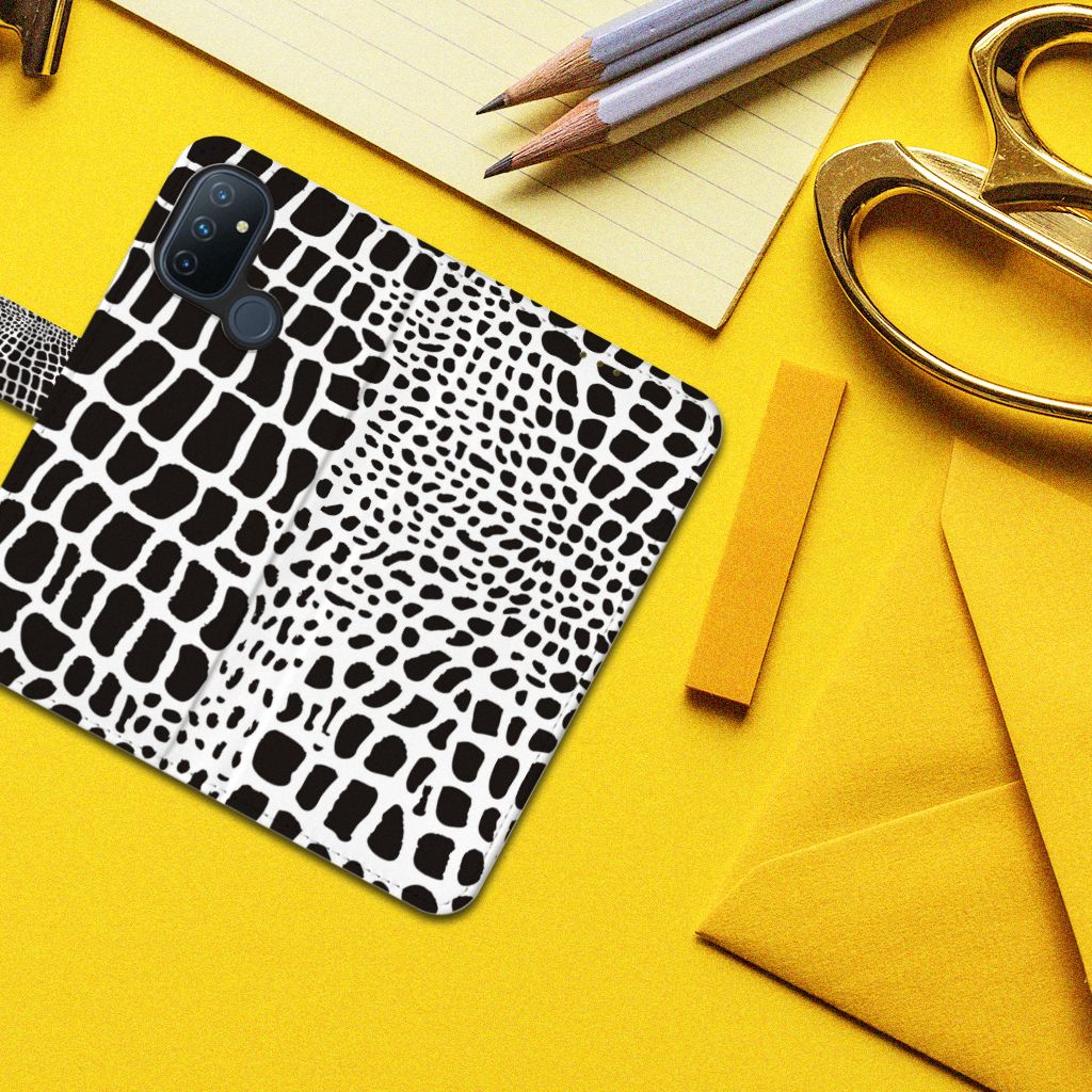 OnePlus Nord N100 Telefoonhoesje met magnetische lipje als sluiting Slangenprint