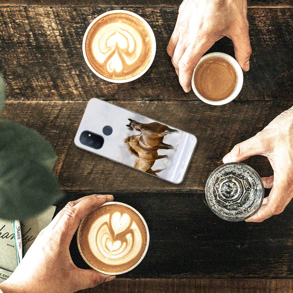 Voor de paardenliefhebbers onder ons hebben we onze collectie uitgebreid met dit design hoesje met print van paarden. Vroeger hield de mens vooral werkpaarden, inmiddels hebben we vriendschap gesloten met het paard. Vandaar dat het ook een favoriet dier is op onze smartphonehoesjes, zoals deze tpu case. Een TPU Hoesje voor de OnePlus Nord N100 met Paarden is niet alleen super mooi en chique, maar ook nog eens zeer flexibel. Verder is de case schokabsorberend en heeft het opstaande randen. Zie je liever je eigen paard terug op een hoesje. Dat kan! Door zelf een uniek hoesje te ontwerpen, met eigen foto’s en teksten. De TPU case wordt aan de bovenzijde bedrukt, de zijkanten blijven transparant.