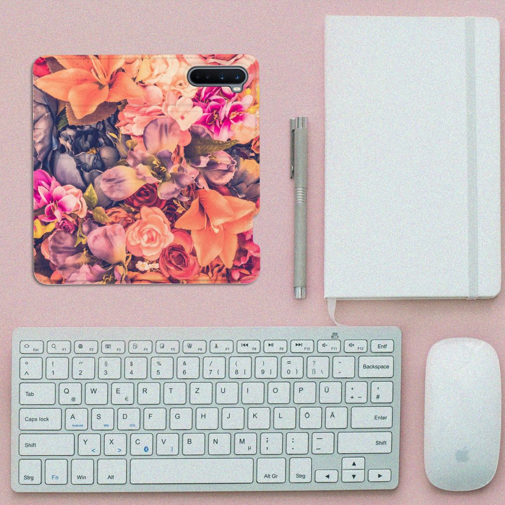 Dit Bosje Bloemen doet een mens en zijn smartphone goed. De oranje, paarse en roze bloemen op deze OnePlus Nord Smart Cover geven jouw smartphone een zeer sierlijke uitstraling. Je wordt er ook meteen vrolijker van als je aan het appen, mailen of aan het bellen bent. Valt dan je telefoon op de grond, dan zal er dankzij de stand case met oranje, paarse en roze bloemen geen schade ontstaan. Onze stand cases met oranje, paarse en roze bloemen bieden de allerbeste bescherming en zijn heel praktisch, wat blijkt uit onder meer het vakje aan de binnenkant en de handige standaard waarmee je de smartphone rechtop op tafel neer kunt zetten. De oranje, paarse en roze bloemen passen goed op alle zijden van de case. Op deze stand case van leer en TPU (houder aan de binnenkant) is het ook mogelijk je eigen ontwerp te zetten. In no time maak je zelf een stand case met daarop foto’s van jouw favoriete bloemen.