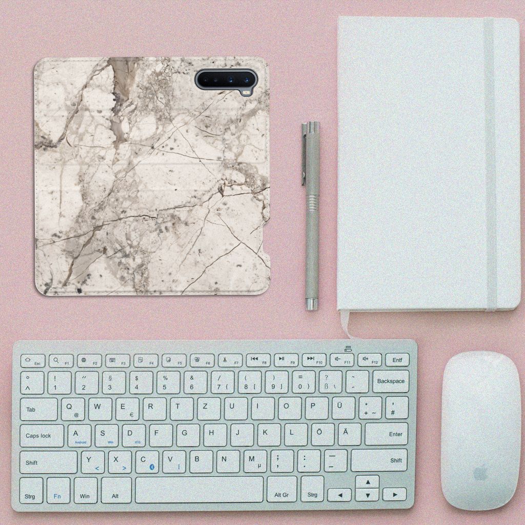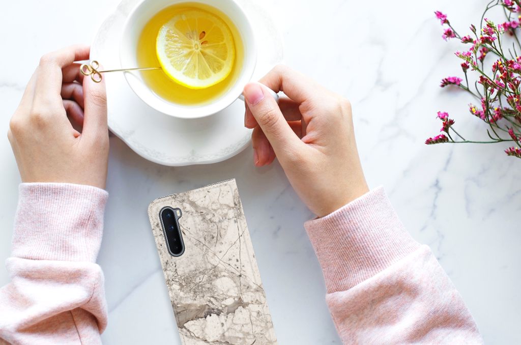 Dit design hoesje met Marmer Beige is voor de artistieke personen onder ons. De Grieken en Romeinen wisten het steen al te waarderen door het als bouw- en bekledingsmateriaal toe te passen. Naast het witte Carrara marmer met haar zacht grijze geaderde belijning zijn de diverse marmersoorten in een ruim kleurenpallet te krijgen. We hebben verschillende kleuren op design hoesjes gezet, zoals in dit geval beige marmer. Dit is een OnePlus Nord Standcase met marmer in beige kleur. Het marmer wordt bedrukt op alle zijden van een stand case, die beschikt over 1 vakje voor een pasje en toebehoren en een magnetische sluiting aan de binnenkant. Verder heeft de case een houder van TPU. De rijkheid aan kleuren en varianties in afwerking geeft designers de vrijheid om met marmer hele mooie architectonische projecten te realiseren. Wij hebben onze designer ook veel vrijheid gegeven. Het resultaat zie je terug in deze stand case met beige marmer, dat de ideale bescherming voor jouw smartphone biedt.