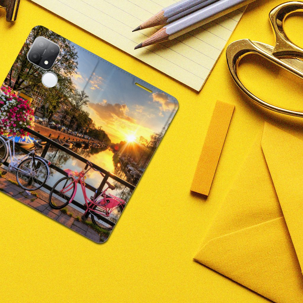 Amsterdam is meer dan ooit een toeristische trekpleister. Een bezoek aan de hoofdstad is niet compleet als er geen bezoek is gebracht aan de Amsterdamse Grachten. Ze zijn een symbool van de stad en hebben een enorme culturele en historische waarde. Daarom kunnen ze natuurlijk niet ontbreken in onze collectie design hoesjes. Dit schitterende design hoesje met Amsterdamse grachten tref je enkel en alleen aan bij B2C Telecom. De ondergaande zon en de fleurige en fraaie bloempakketten zorgen voor een prachtig totaalplaatje. Amsterdam is wereldberoemd om haar prachtige grachten uit de zeventiende eeuw. Dit smartphone hoesje is hier een eerbetoon aan. Het design staat op een stand case. Deze OPPO A15 Book Cover beschermt jouw telefoon aan alle kanten en beschikt over een 1 opbergvakje en een speciale standaard. Het hoesje wordt afgesloten met een magneet aan de binnenzijde. De houder aan de binnenzijde is van TPU. Alle zijden van de stand case worden bedrukt.