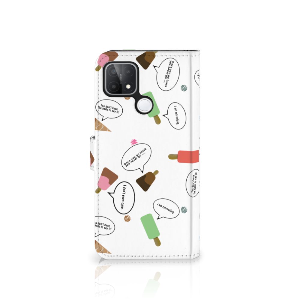 Van dit vrolijke OPPO A15 Book Cover met daarop verschillende soorten ijsjes met tekstwolkjes krijg je sowieso een vrij en zomers gevoel. De zomer komt naar je toe met deze print van ijsjes met tekstwolkjes. Ben je op het strand, dan ontbreekt een lekker ijsje natuurlijk niet. Net zoals je je smartphone bij de hand hebt, met daaromheen een design hoesje met bijzondere ijsjes en tekstwolkjes. Jouw telefoon kan dan de bescherming in de vorm van een boekhoesje met ijsjes zeer goed gebruiken. Alle zijden van dit hoesje worden bedrukt met ijsjes en tekstwolkjes. De case heeft een lipje aan de buitenzijde voor het afsluiten van de telefoon en de houder aan de binnenzijde is van TPU. Onder alle weersomstandigheden zal deze case met verschillende opbergvakjes perfect functioneren, ook op het strand met een ijsje in je hand.