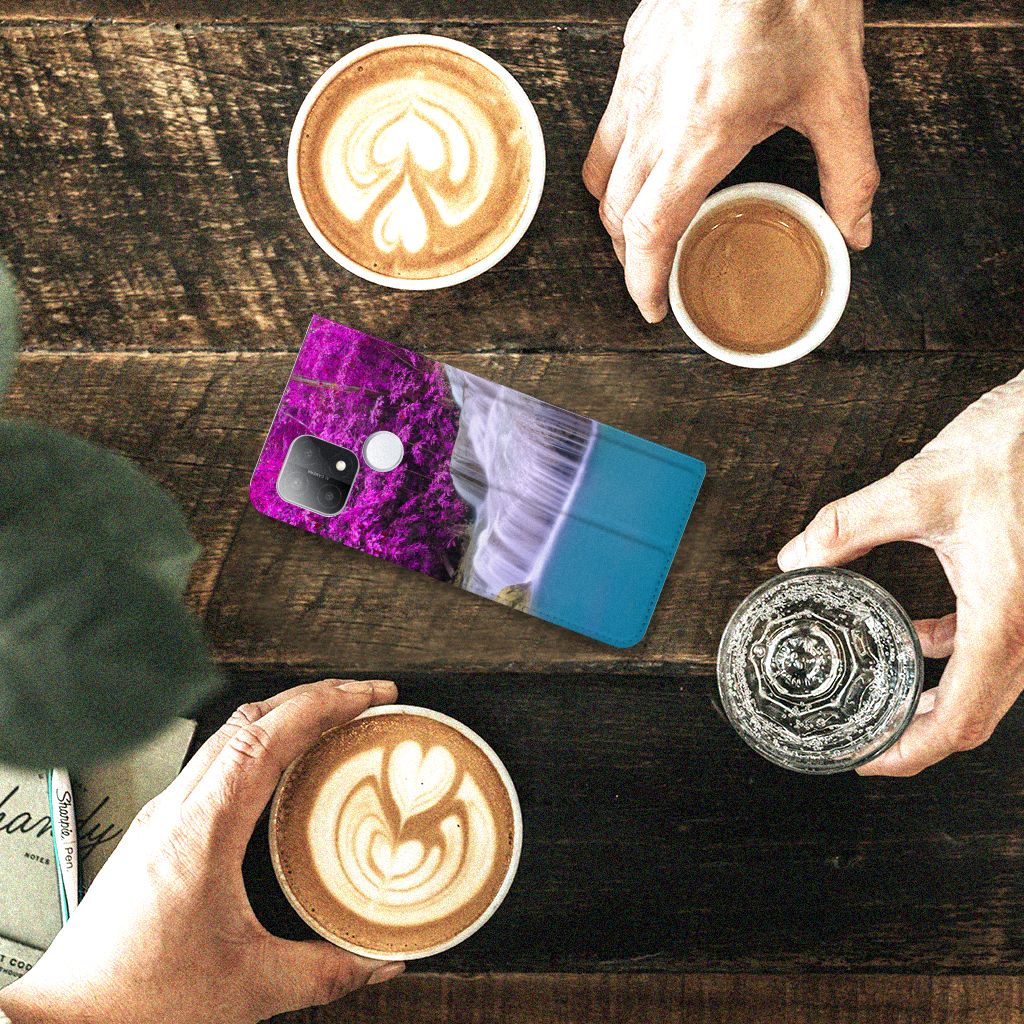 Van een waterval kun je een heel rustig gevoel krijgen, zeker als die op een OPPO A15 Book Cover staat dat jouw smartphone perfect beschermt tegen allerlei vormen van schade zoals krassen, barsten en scheuren. In de buurt van een waterval ben je tijdens warme zomerdagen niet alleen verzekerd van aangename verkoeling, het is ook een bijzonder rustgevende ervaring. Uit onderzoek blijkt zelfs dat watervallen een helend effect hebben op allerlei aandoeningen. Extra bijzonderheid aan de stand case vormen de paarse bossen op de achtergrond. Dit smartphonehoesje beschermt jouw telefoon aan alle zijden en beschikt over een opbergvakje voor pasjes en briefgeld. De case sluit perfect af dankzij de magneten van binnen. De houder aan de binnenzijde is van TPU. Alle zijden van het hoesje worden bedrukt. Een mooiere waterval met paarse achtergrond kom je op geen enkel ander hoesje tegen.