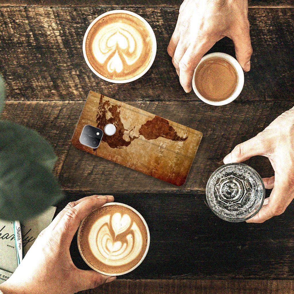 Als je een hoesje koopt met een wereldkaart, kun jij op veilige wijze met je smartphone rond de wereld reizen. Ga je zonder een boekhoesje met wereldkaart het buitenland verkennen, dan loop je veel te groot risico dat je stukken krijgt aan je smartphone. Met als gevolg dat je de belangrijke gebeurtenissen op je reis wellicht niet meer vast kunt leggen om door te sturen aan je vrienden. In het slechtste geval wordt jouw toestel zonder een smartphone hoesje met wereldkaart onbruikbaar. Wij kunnen de wereldkaart bedrukken op een stand case. Een OPPO A15 Book Cover beschermt jouw telefoon aan alle kanten en beschikt over een 1 opbergvakje en een speciale standaard. Het hoesje wordt afgesloten met een magneet aan de binnenzijde. De houder aan de binnenzijde is van TPU. Dit stand hoesje met wereldkaart is voor een zeer laag bedrag te bestellen.