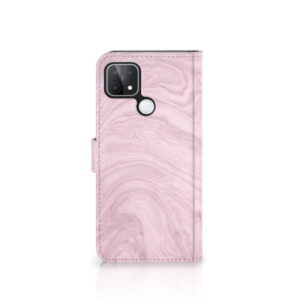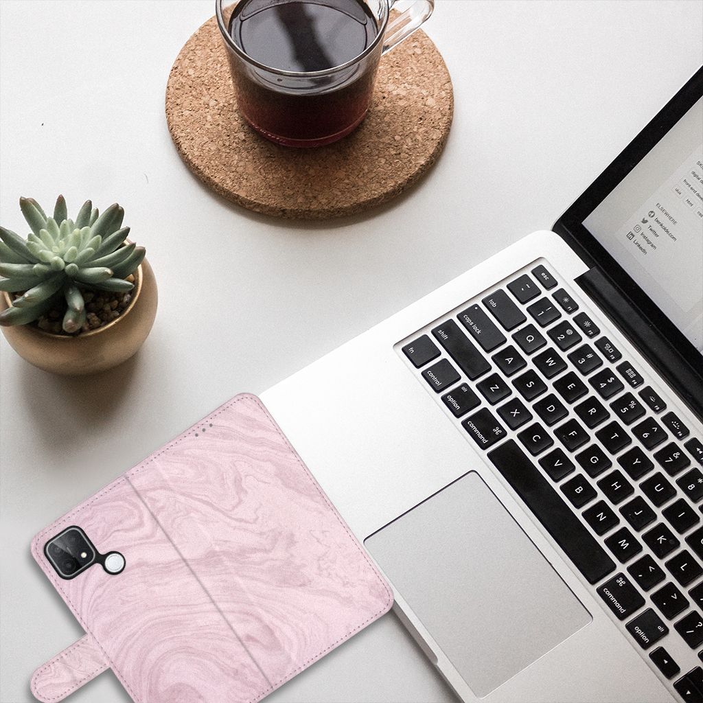 OPPO A15 Bookcase met magnetische sluitclip Marble Pink