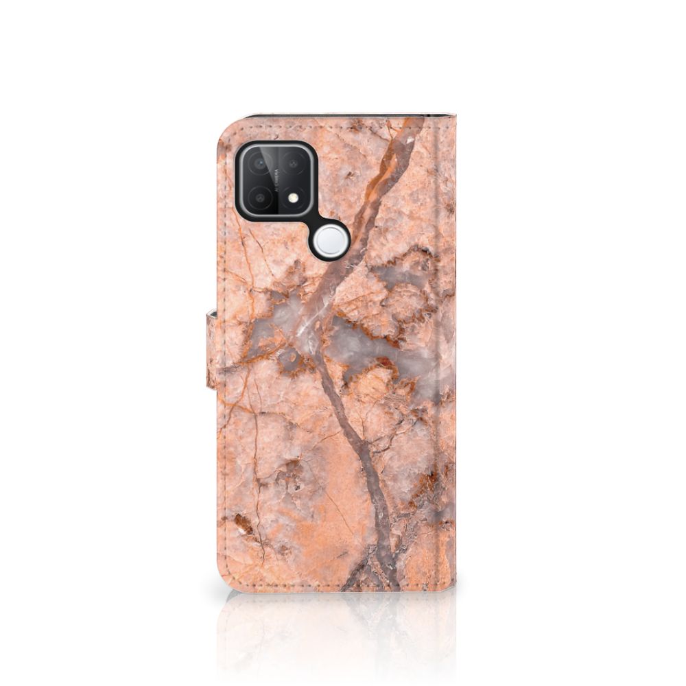 OPPO A15 Bookcase met pasjes Marmer Oranje