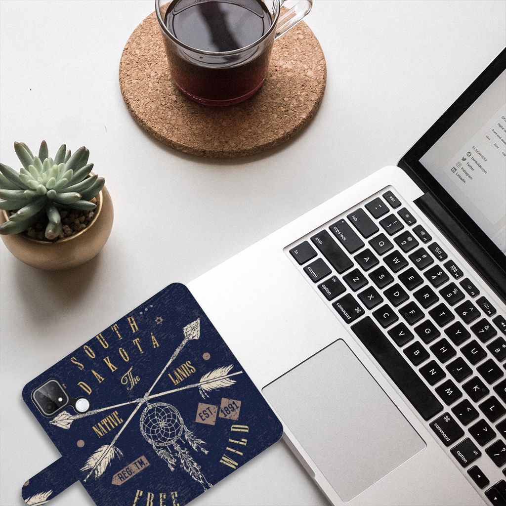 Het gebied dat nu South Dakota heet werd oorspronkelijk bevolkt door Indianenstammen, vandaar dat dit design hoesje er wellicht zo stoer uitziet. Het is ook nog eens zeer stevig. Boekhoesjes bieden de allerbeste bescherming voor jouw smartphone, dit komt omdat ze jouw apparaat compleet afsluiten van invloeden van buitenaf. Alle zijden van een OPPO A15 Flip Cover worden bedrukt, pas nadat jij je bestelling hebt geplaatst. In het westen van South Dakota bevinden zich de Black Hills, hier is het wereldberoemde Mount Rushmore-monument te vinden. Wellicht dat dit ook nog eens op onze hoesjes komt te staan, voor nu moet je het doen met deze South Dakota print. De bookstyle case heet niet voor niet zo. Het is een stijlvolle case, voorzien van een lipje aan de buitenkant en opbergvakjes. Gecombineerd met de TPU houder aan de binnenkant, zorgt dit voor een perfecte bescherming van jouw telefoon.