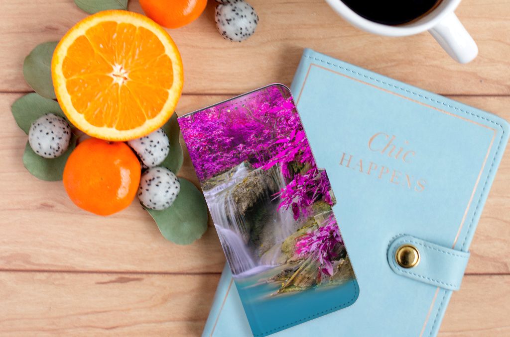 Op deze OPPO A15 Flip Cover zie je een kalme waterval en de achtergrond is gevuld met paarse bomen. Samen creëert dit een prachtig en kleurrijk spektakel, iets wat je graag op je OPPO A15 hoesje ziet. Wanneer je hiernaar kijkt, word je direct kalm. Als jij je even boos of verdrietig voelt, hoef je alleen maar naar jouw boekhoesje te kijken om weer blij te worden. Ook jouw telefoon zal blij zijn met deze Flip Cover aangezien deze goede bescherming biedt. Als jij je telefoon per ongeluk laat vallen, is er niets aan de hand. Het hoesje zorgt ervoor dat de telefoon intact blijft. Zelfs als hij op het beeldscherm zou vallen, is er dankzij de magnetische sluiting, niets aan de hand.